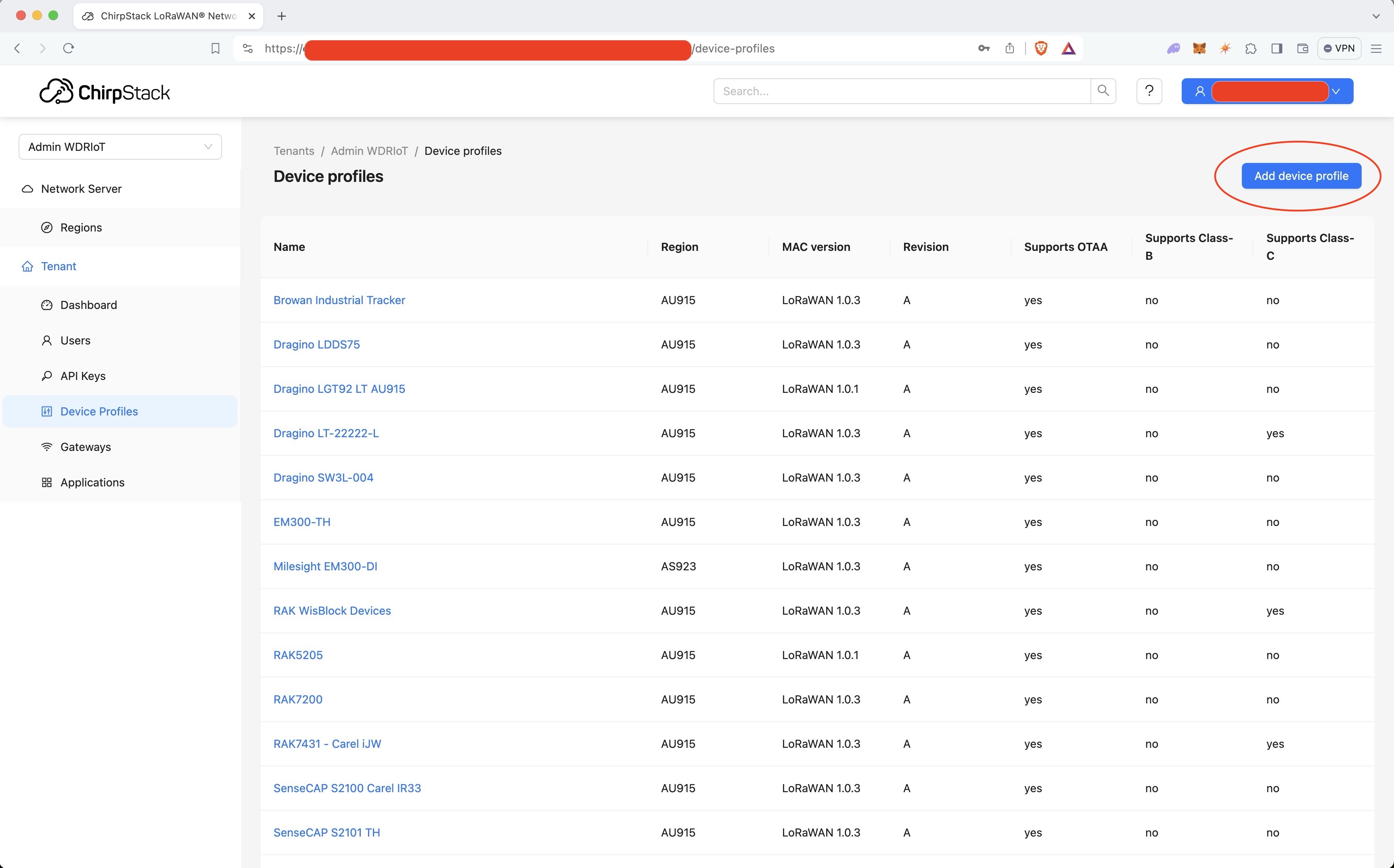 From Device Profiles click on Add device profile.