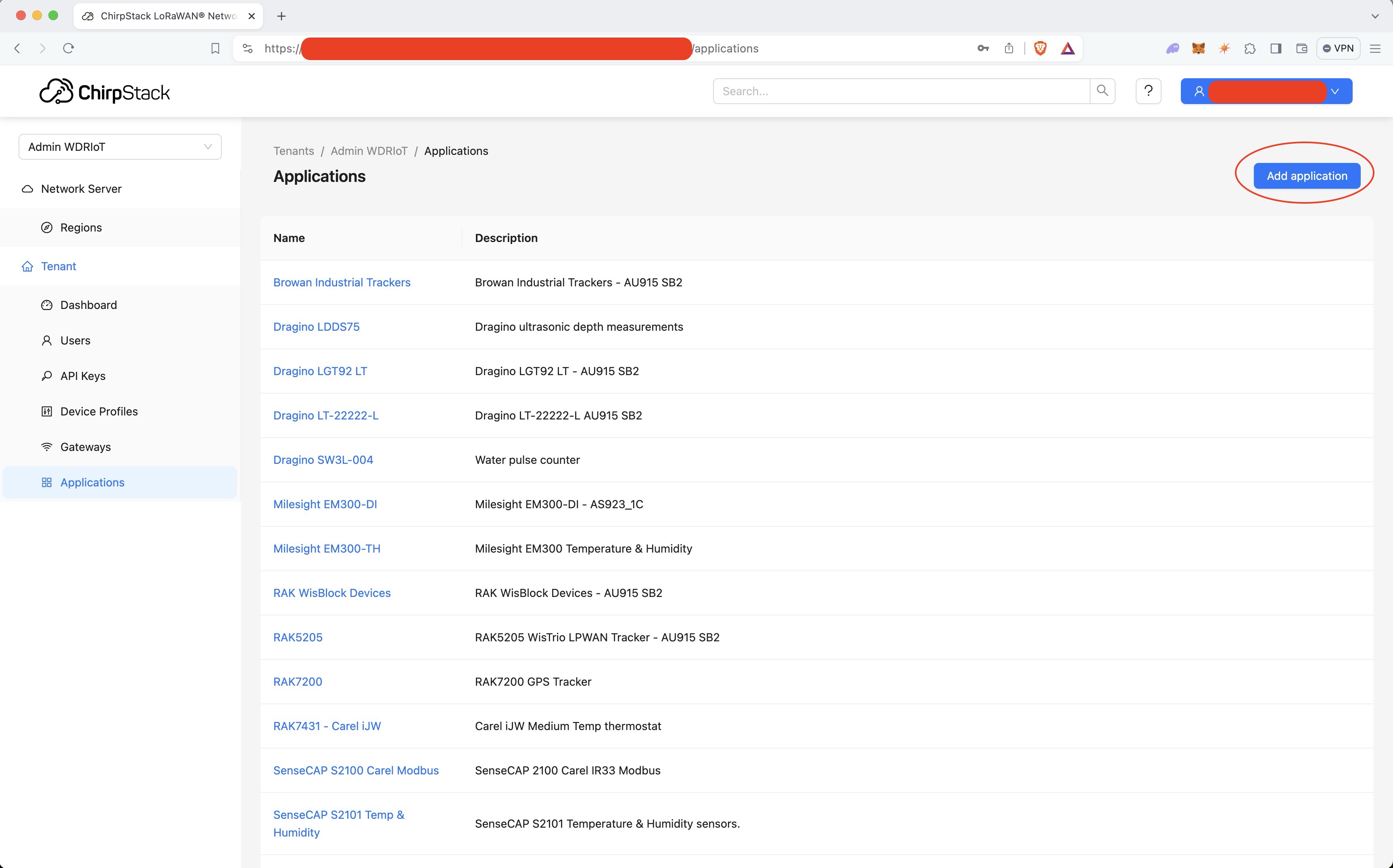 Application -> Application-Name -> Add Device
