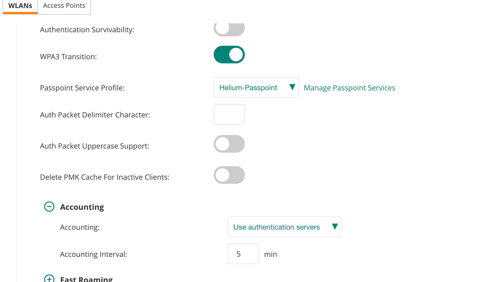 Note: Ensure you've selected your AP first or the WLAN options won't show.