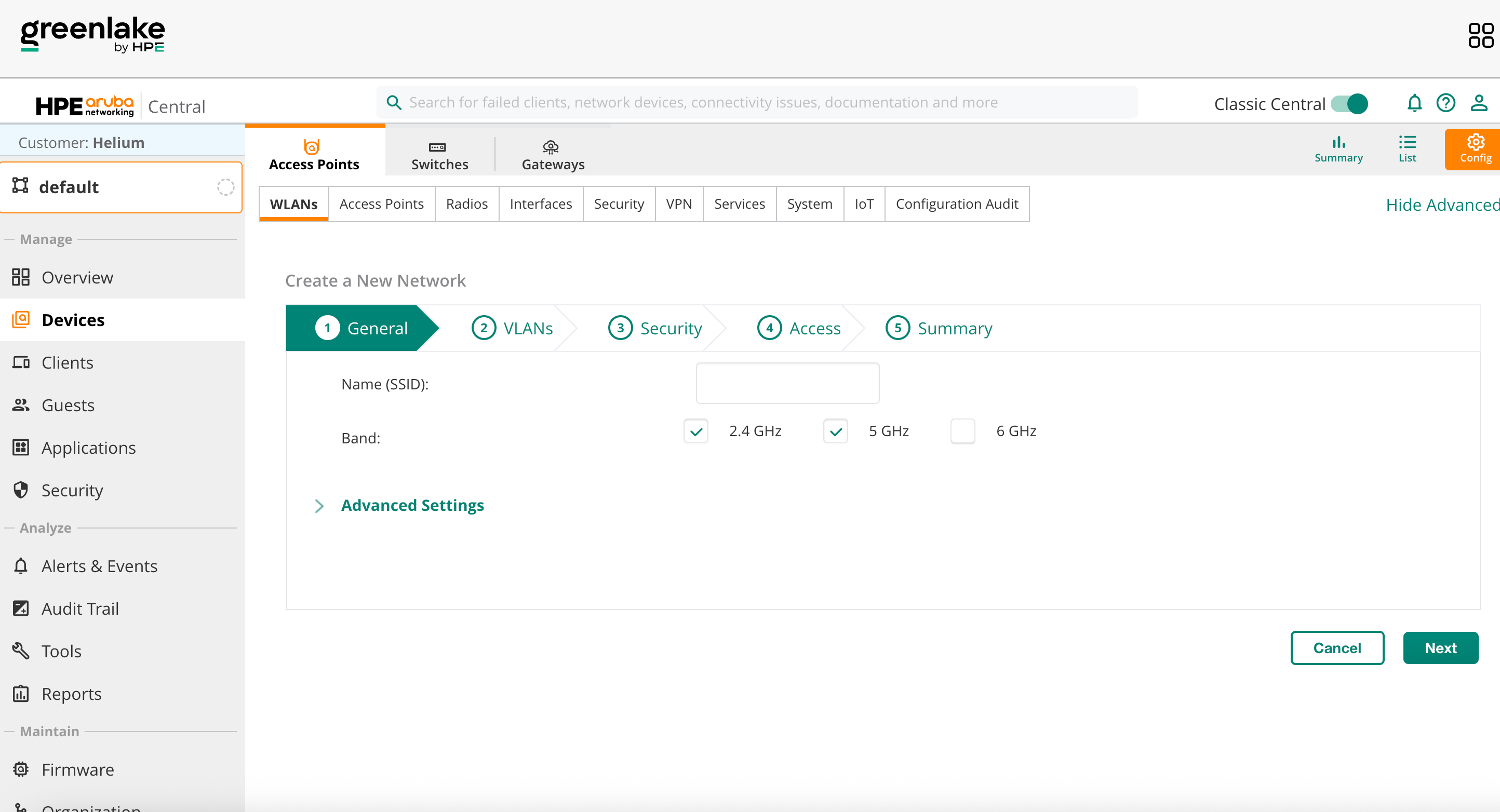 If your Aruba dashboard shows a "Classic Central" toggle, enable it.