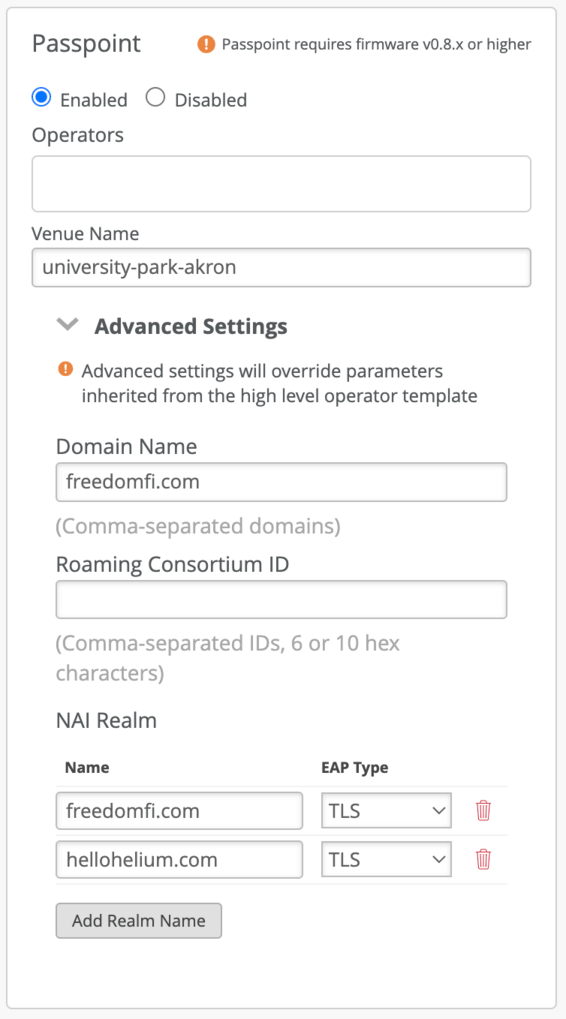 - Configure Passpoint settings.