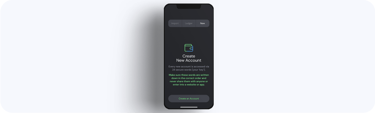 | Ledger | Tap the Ledger option and follow the in-app prompts to pair with the hardware wallet. |