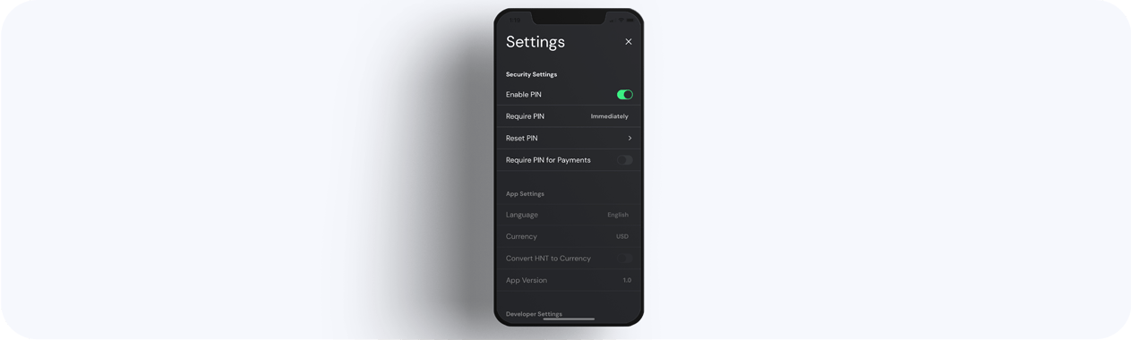 The Helium Wallet app has interface settings that can be adjusted to your liking.